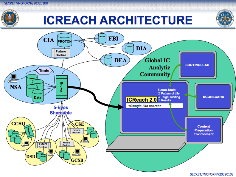 The documents provide the first definitive evidence that the NSA has for years made massive amounts of surveillance data directly accessible to domestic law enforcement agencies. Planning documents for ICREACH, as the search engine is called, cite the Federal Bureau of Investigation and the Drug Enforcement Administration as key participants.